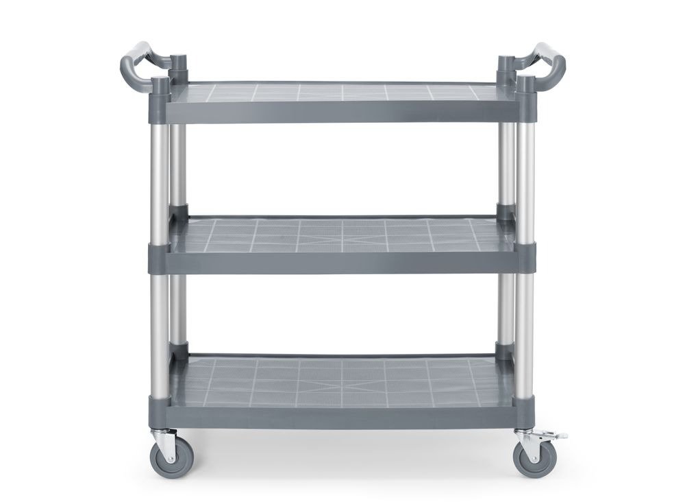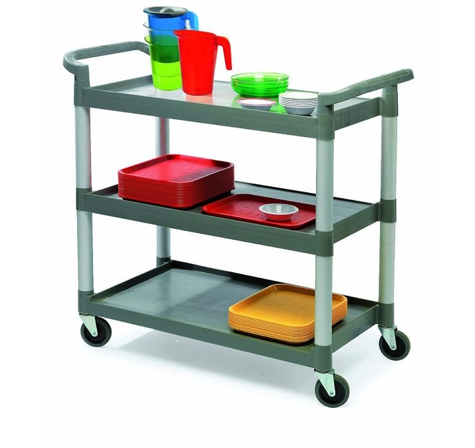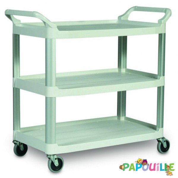 Avec ses trois plateaux spacieux, ce chariot offre une capacité de charge totale de 90,7 kg, soit 30 kg par niveau, permettant de déplacer facilement vaisselle, linge, jeux éducatifs ou matériel pédagogique. Sa hauteur ergonomique de 95,9 cm assure une manipulation confortable, réduisant les efforts pour le personnel.