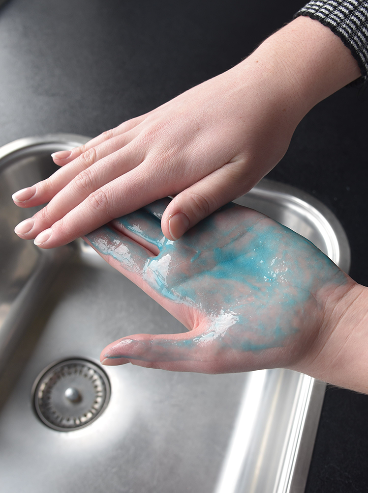 Le savon est visible sur vos mains jusqu'à ce qu'il soit complètement lavé