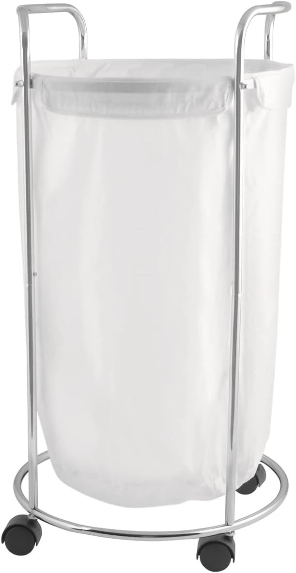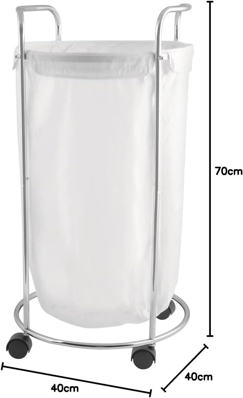 Sa structure en acier chromé offre une excellente résistance à l’humidité et à l’usure, tandis que le sac en polyester blanc assure légèreté, durabilité et facilité d’entretien. Le sac, amovible et lavable, se retire en un geste pour un nettoyage rapide et efficace, indispensable dans les environnements collectifs.