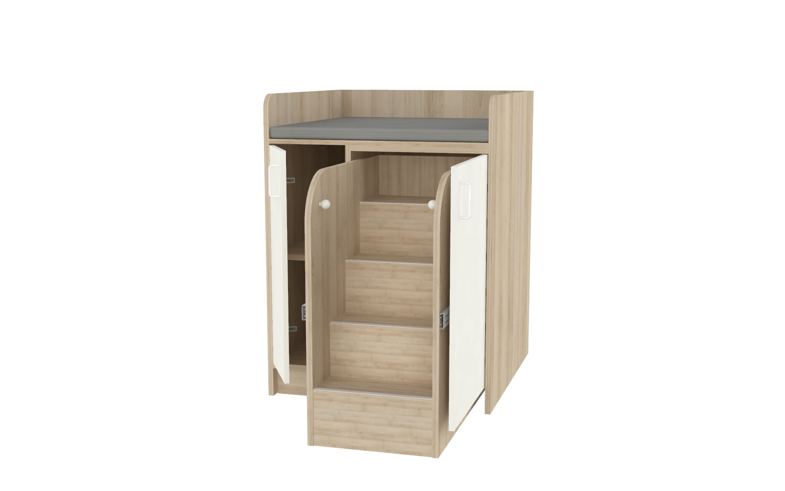 Le plan de change sec avec escalier escamotable est conçu pour les structures d'accueil de jeunes enfants, telles que les crèches, micro-crèches, EAJE et collectivités. Il offre une solution ergonomique et sécurisée pour le change des enfants, tout en garantissant un confort optimal aux professionnels de la petite enfance.