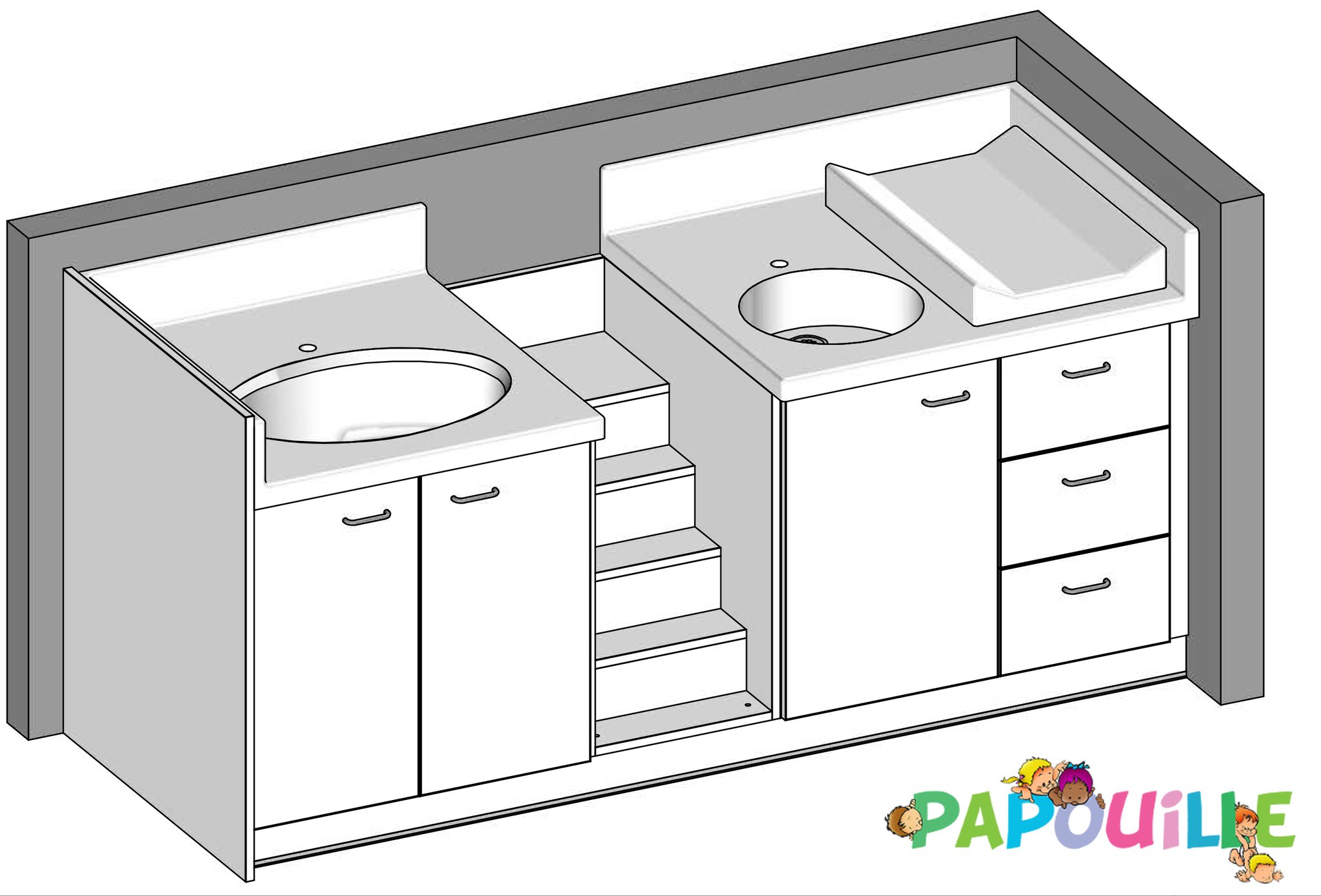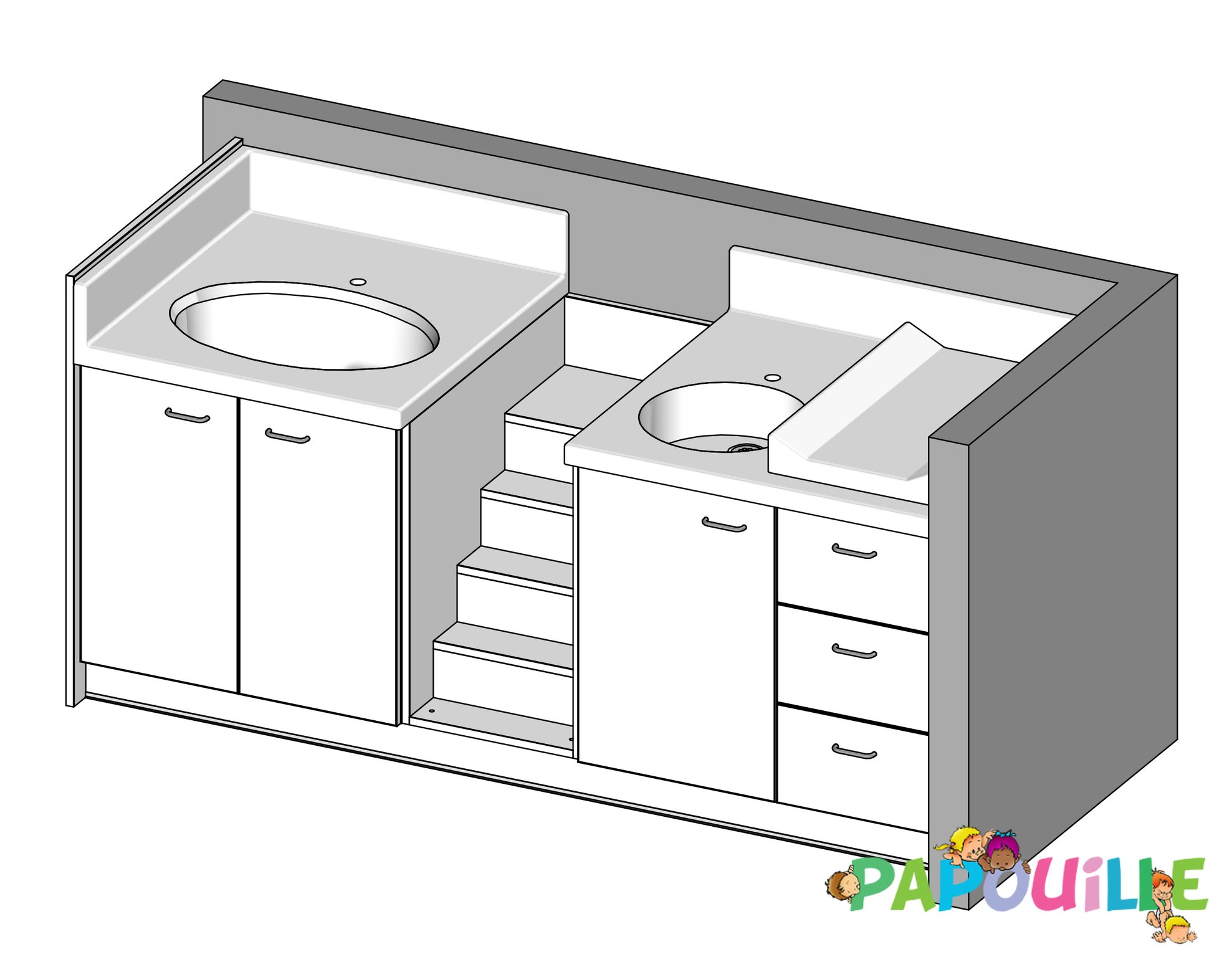 Meuble à langer deux cuve - modèle 2 - 2...
