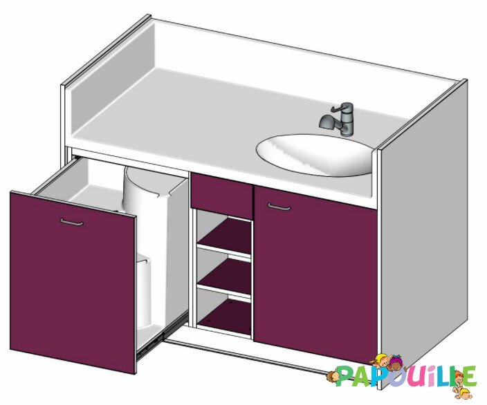 Meuble à langer une cuve - modèle 1 - 1500 x 830 mm prune