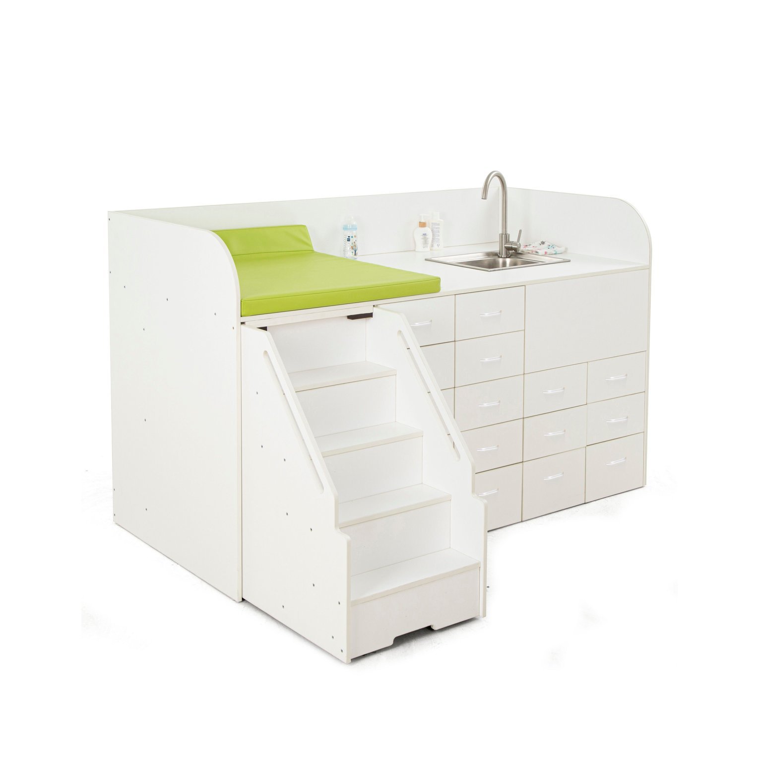 Offrez un espace de change ergonomique et sécurisé avec ce meuble de déshabillage conçu pour les crèches, micro-crèches et structures d’accueil de jeunes enfants. Doté d’un escalier intégré, il permet aux enfants de monter en toute autonomie, réduisant ainsi la charge de travail des professionnels de la petite enfance. Son plan à langer spacieux assure un confort optimal pour le change, tandis que son contour de sécurité à l’arrière protège efficacement les tout-petits.