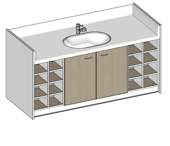 1 meuble double portes avec 1 étagère, facade(s) mélaminés , chants PVC blanc 2 mm, 2 meubles 8 cases ouvertes, facade(s) mélaminée(s), chant PVC blanc 2 mm, Coloris des facades H028, Hors tapis de change, Mitigeur(s)en option