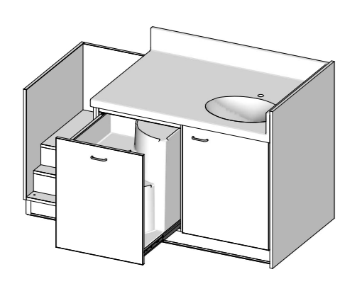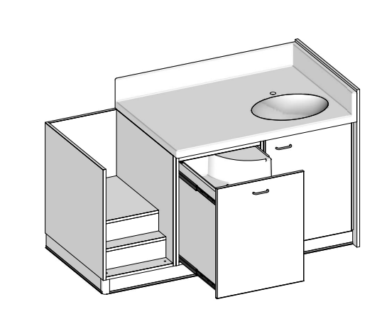 Sa vasque spacieuse (495 x 365 mm) permet un lavage efficace et confortable des tout-petits. Les dosserets arrière et latéraux protègent des éclaboussures, facilitant ainsi le nettoyage et limitant les risques de glissade. Le meuble change debout et l’escalier coulissant sont pensés pour favoriser l’autonomie des enfants tout en soulageant les professionnels de la petite enfance.