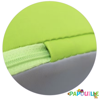 Toutes les pièces sont cousues avec du fil polyester à haute résistance et ont un système de dissimulation de fermeture éclair qui empêche l'accès à la mousse, vérifier que la mousse n'est pas accessibles par les enfants.