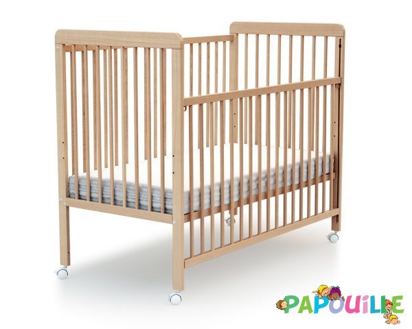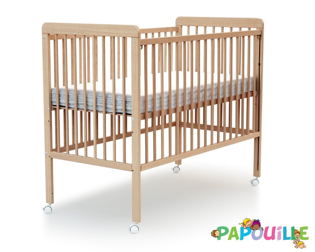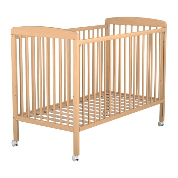 Lit à barreaux en bois réglable 3 hauteurs 60x120cm vernis - avec roulettes -