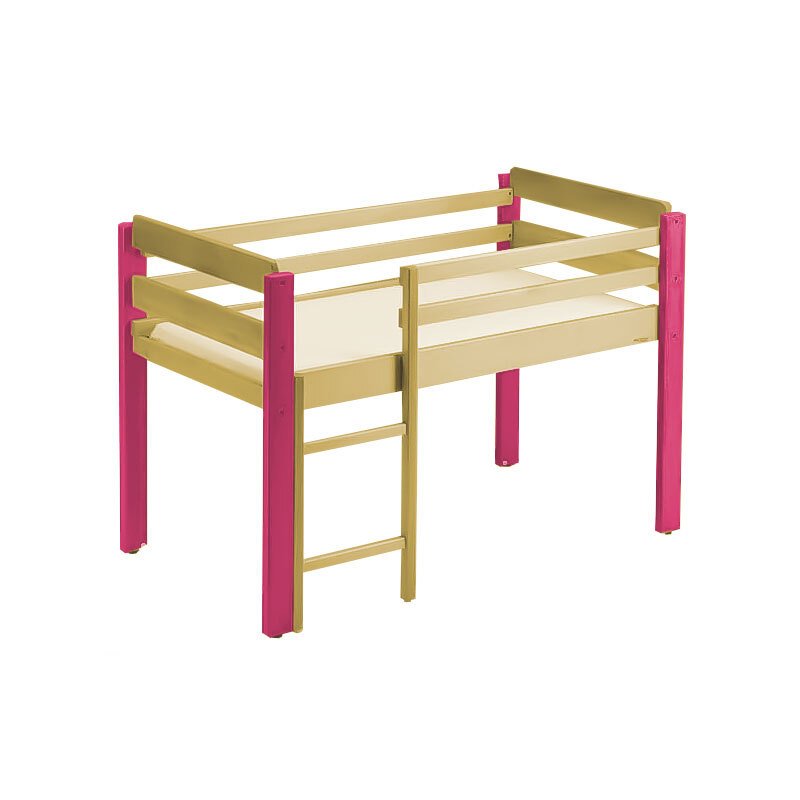 Lit bébé en bois mezzanine 120 x 60cm framboise