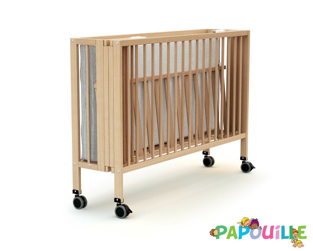 Lit en bois pliant enfant pro avec roulettes naturel