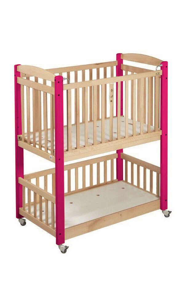 Le lit crèche à double niveau possède une barrière amovible qui permettra au personnel d’avoir un accès facile à l’enfant.