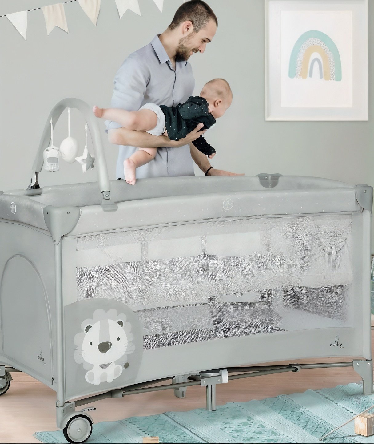 Pour les professionnels de la petite enfance, ce lit est un atout pratique grâce à son pliage compact et son sac de transport inclus, permettant un rangement et un transport aisés. De plus, la double hauteur réglable est idéale pour les nourrissons jusqu’à 6 mois, simplifiant les soins au quotidien.