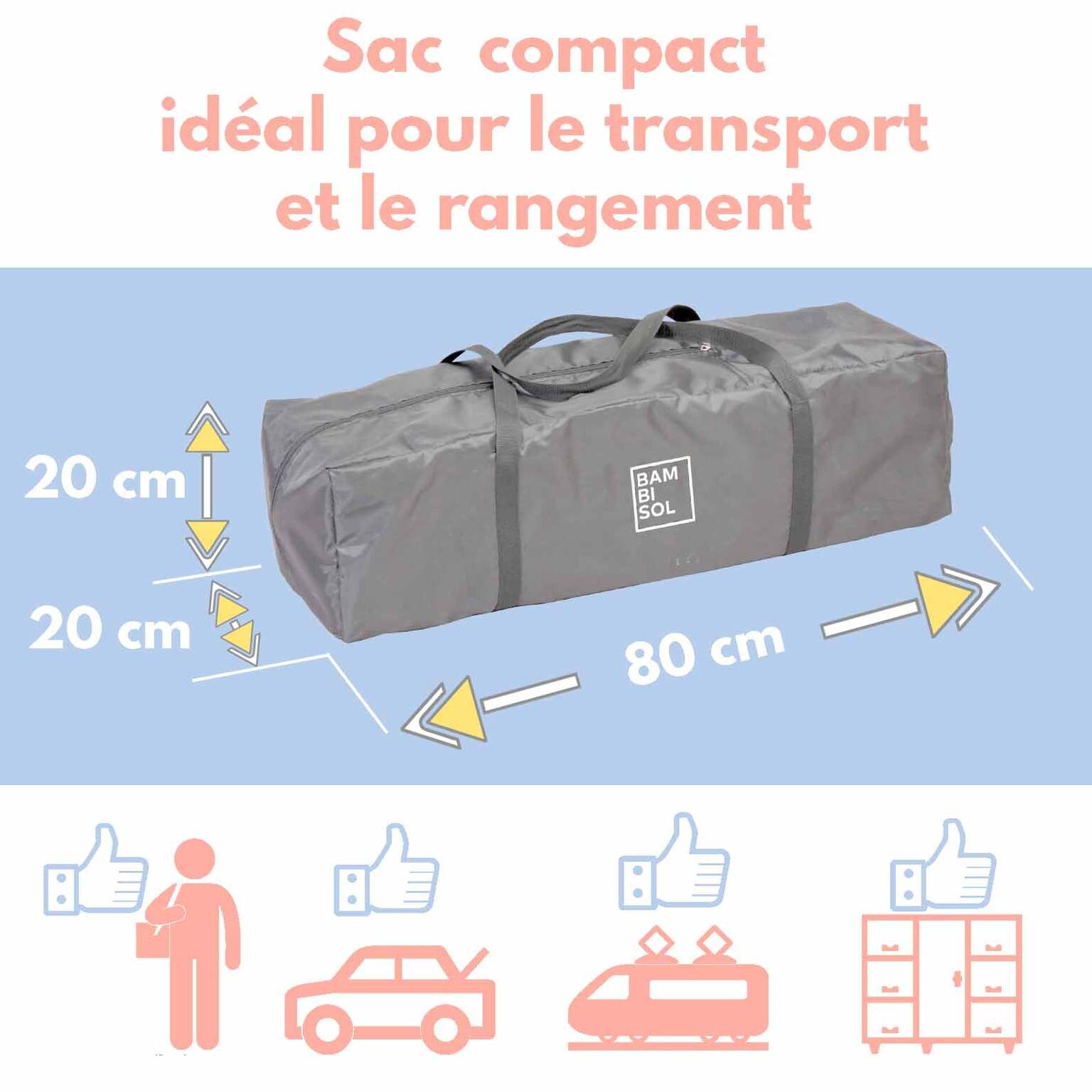 Lit parapluie de voyage 120 x 60cm pour bébé de la naissance à 36 mois (max 15kg), avec matelas inclus