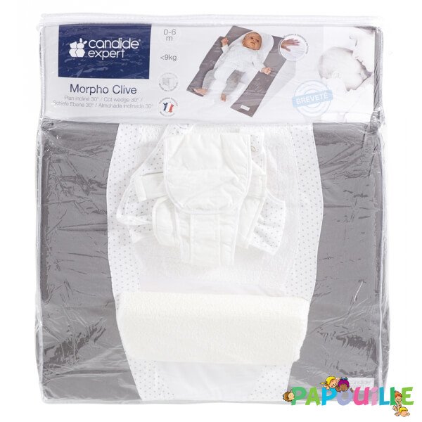 Le Morpho Clive de Candide est un Plan incliné 30° qui a été conçu afin d'améliorer le bien-être de bébé lors de gênes respiratoires et digestives. En cas de légers ronflements ou d'encombrement nasal, cette position inclinée lui permet de mieux respirer. Elle peut également apaiser un enfant souffrant de régurgitations.