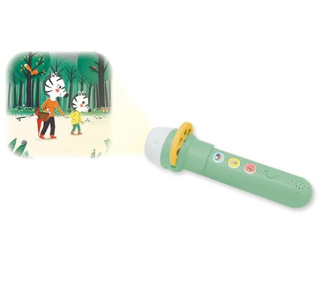 Inclus : Lampe sonore, 3 rondelles de projection (8 images par rondelle), pochon de rangement en coton