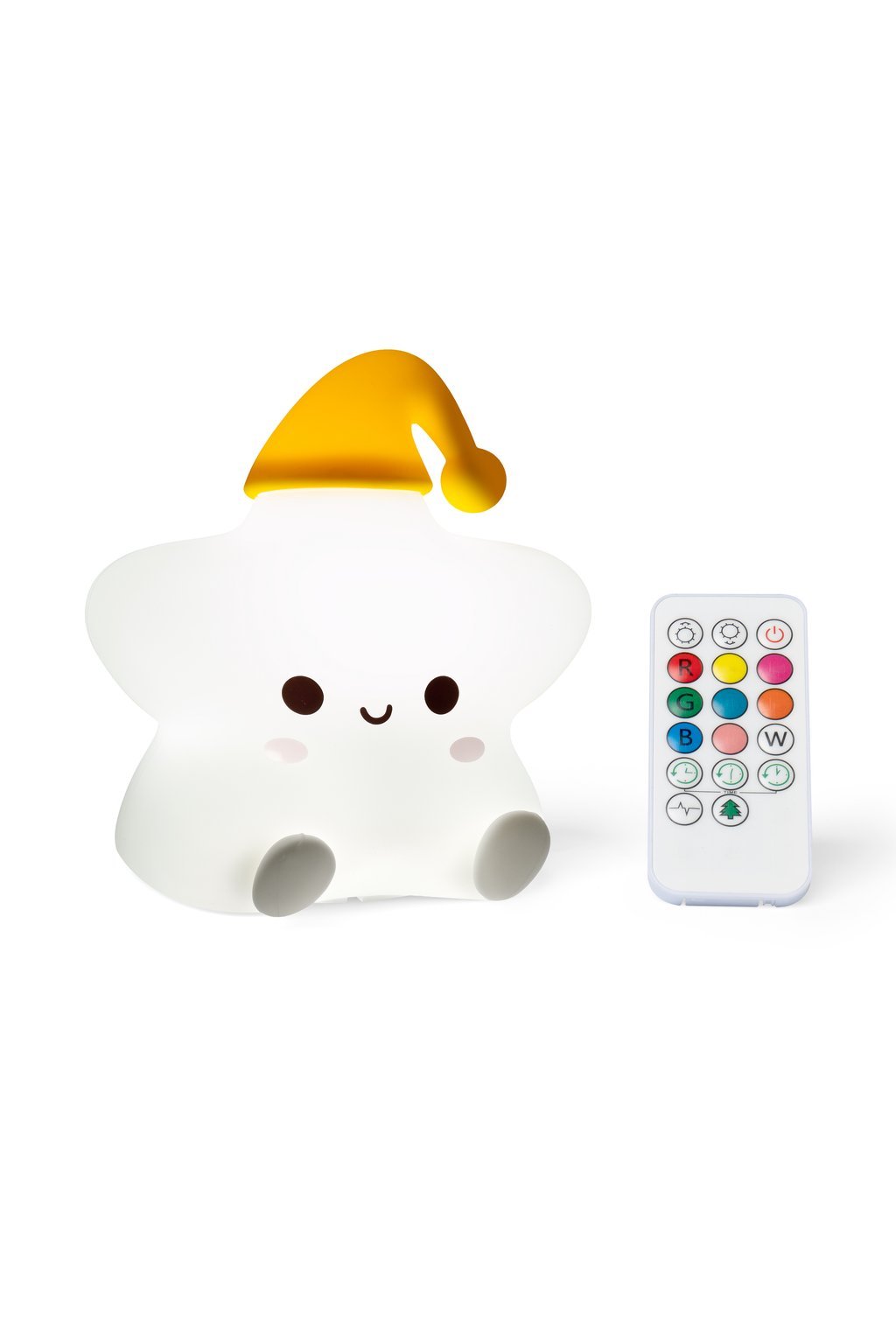 Grâce à sa technologie LED multicolore, cette veilleuse propose 7 teintes lumineuses au choix : lumière blanche apaisante, couleurs fixes ou mode défilement pour créer une atmosphère magique dans la chambre. La télécommande incluse permet de régler facilement la luminosité, le choix des couleurs, même à distance. Son mode veille automatique assure une extinction programmée, garantissant une utilisation économe et sécurisée pendant la nuit.
