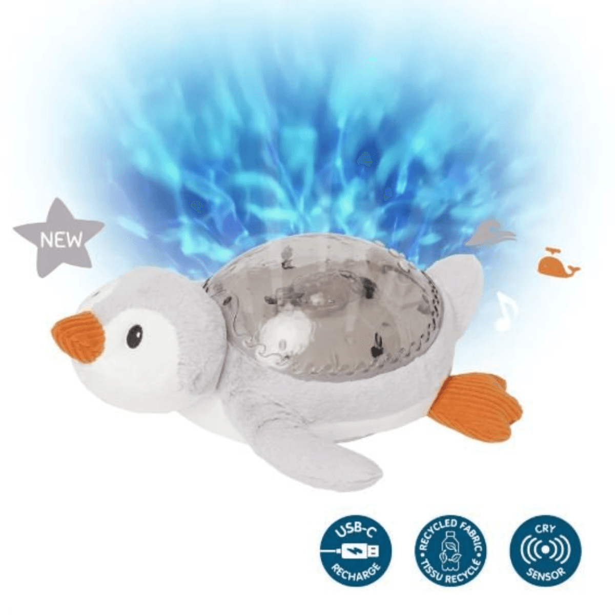 Apportez un cocon de douceur et de sérénité à la chambre des tout-petits avec la veilleuse Pingouin musicale éco-responsable. Conçue en fibres 100 % recyclées à partir de bouteilles en plastique, cette peluche veilleuse se distingue par son design adorable et ses fonctionnalités innovantes. Dès la tombée de la nuit, elle projette un effet lumineux enchanteur imitant les aurores polaires sous-marines en mouvement, plongeant bébé dans une atmosphère apaisante propice au sommeil.