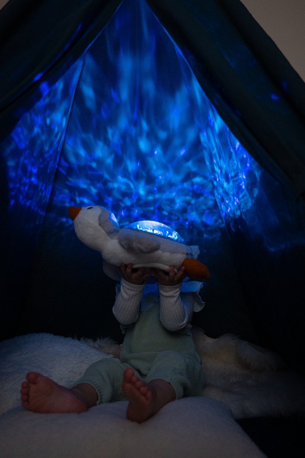 Grâce à ses quatre sons relaxants — deux mélodies sous-marines et deux bruits blancs (chants de baleines et vagues de l’océan) — elle aide à calmer les pleurs et à favoriser un endormissement naturel. Le volume est ajustable sur six niveaux, permettant aux professionnels de la petite enfance en crèche ou aux parents à domicile de créer l’environnement sonore parfait.