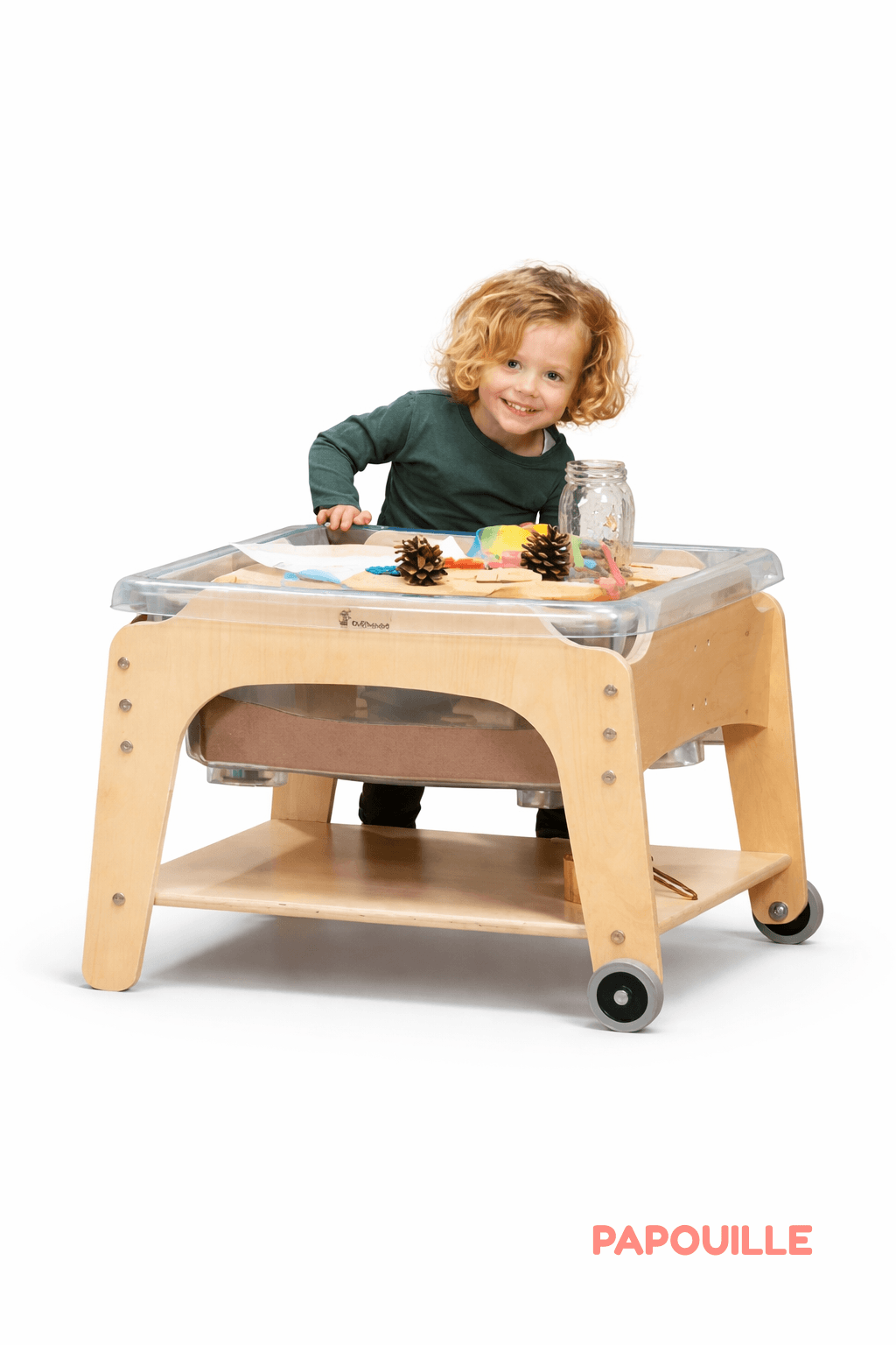 Compacte et ingénieusement conçue, la table Sensorielle Sable et Eau est idéale pour les crèches, micro-crèches, MAM et autres structures d’accueil disposant d’espaces réduits. Son format optimisé permet d’aménager facilement un coin d’exploration sensorielle, même dans un environnement restreint. Polyvalente, elle peut être utilisée aussi bien en intérieur qu’en extérieur (avec rangement conseillé à l’intérieur).
