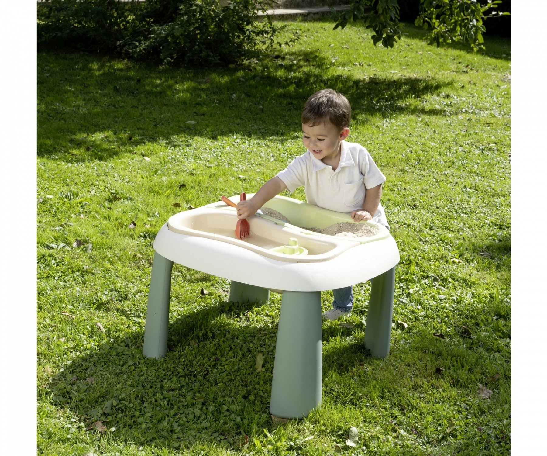 La Table Sable et Eau Smoby Life est un incontournable pour les activités extérieures en crèche, micro-crèche ou EAJE. Conçue avec au moins 83 % de plastique recyclé, cette table ludique favorise l’éveil sensoriel et la motricité fine des tout-petits, tout en respectant l’environnement. Elle se compose de deux bacs amovibles permettant de jouer à la fois avec de l'eau et du sable, stimulant ainsi l’imagination des enfants dès 18 mois.