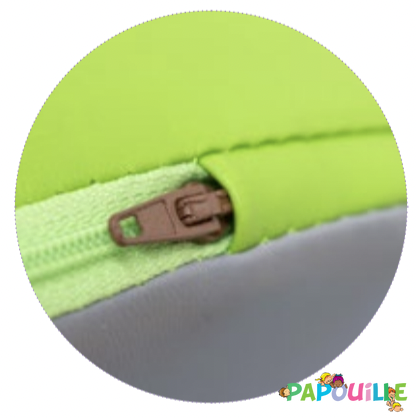 Toutes les pièces sont cousues avec du fil polyester à haute résistance et ont un système de dissimulation de fermeture éclair qui empêche l'accès à la mousse, vérifier que la mousse n'est pas accessibles par les enfants.