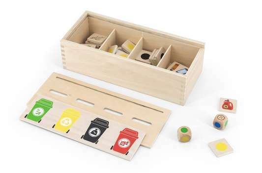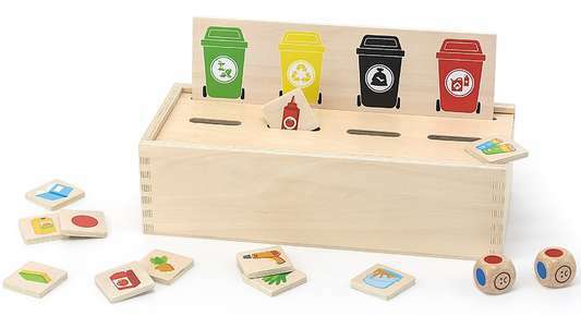J'apprend le tri sélectif - jouet en bois - placer les bons déchets dans les bonnes poubelles, un geste pour l'avenir,