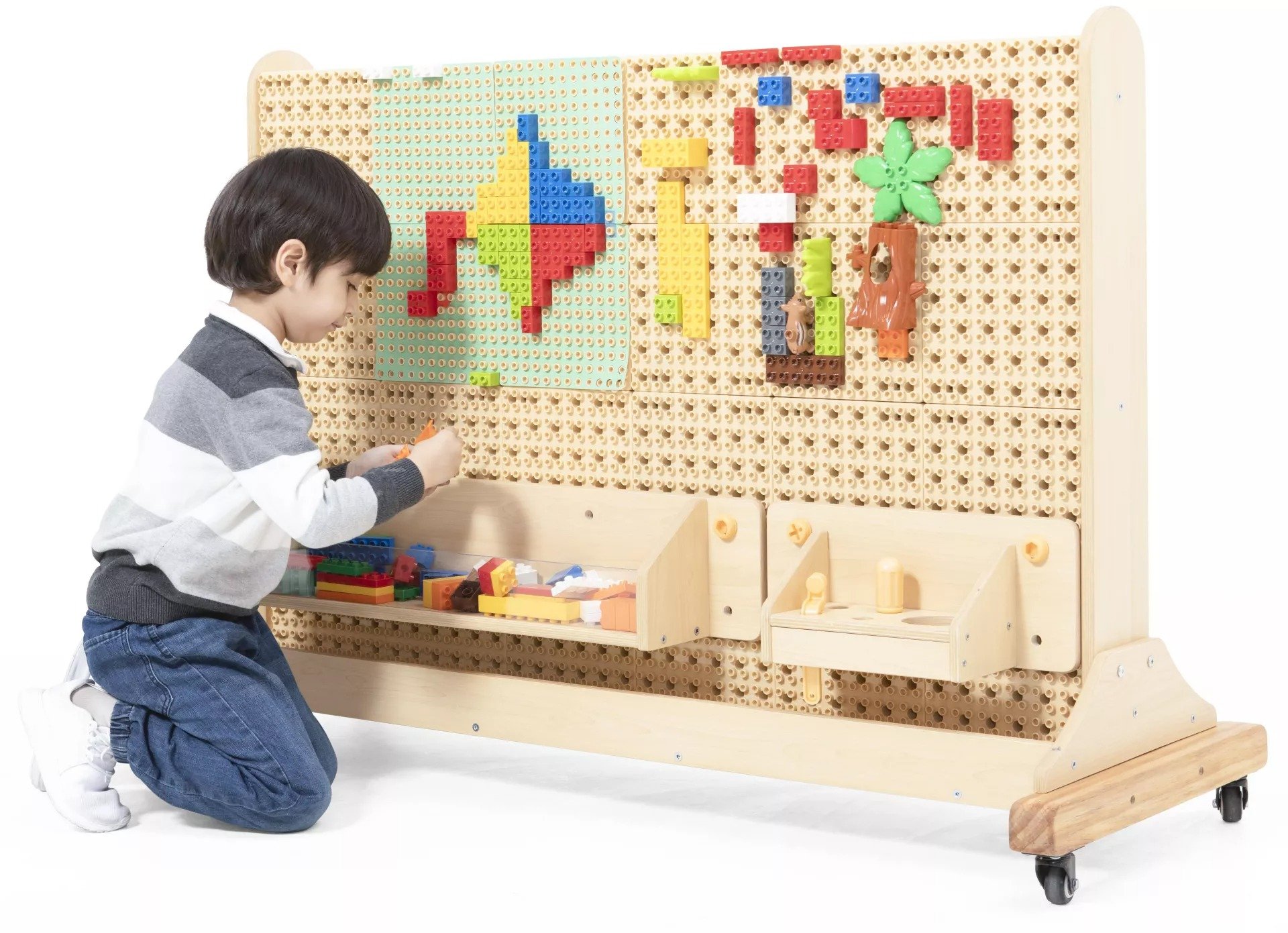 Facile à déplacer grâce à ses roulettes silencieuses avec frein, il s’adapte à tous les espaces : coin construction, salle d'activités ou même en salle polyvalente. Il encourage l’autonomie, l’imagination et le travail en groupe, tout en développant la motricité fine, la coordination œil-main et les capacités de résolution de problèmes.