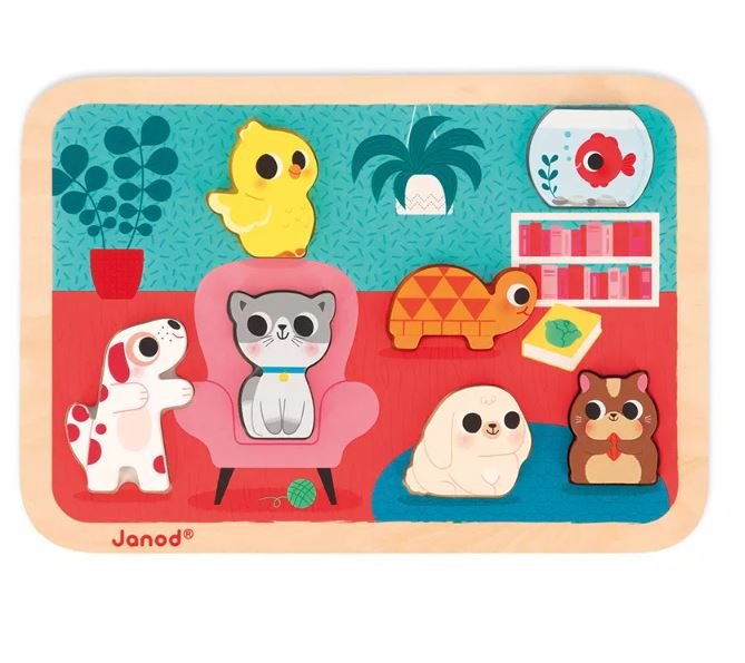 Découvrez le Chunky Puzzle Animaux Familiers, un jouet d'éveil ludique et éducatif conçu pour les tout-petits dès 18 mois. Ce puzzle en bois, doté de 7 pièces épaisses représentant des animaux familiers tels que le chien, le chat, la tortue ou encore le lapin, est parfait pour initier votre enfant à la découverte des animaux domestiques tout en stimulant sa motricité fine.