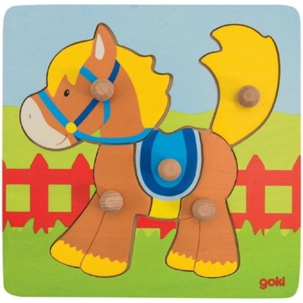 Puzzle à encastrer avec bouton en bois cheval 5 pcs ( pour les enfants de 1 an et plus )