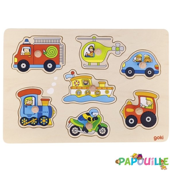 - Puzzle à encastrer avec bouton en bois les véhicules 8 pcs ( pour les enfants de 1 an et plus )