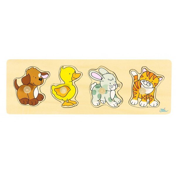 - Puzzle à encastrer avec bouton en bois petit animaux n°1 4 pcs ( pour les enfants de 1 an et plus )