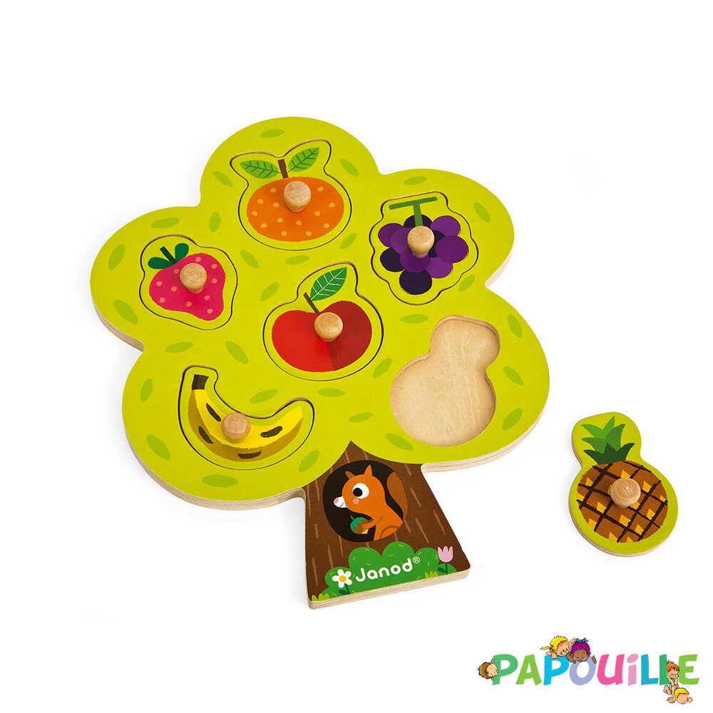 Notre puzzle à encastrer avec boutons en bois représentant un arbre à fruits est un excellent choix pour les enfants de 18 mois et plus. Composé de 6 pièces en bois solides et durables, ce puzzle est idéal pour développer les habiletés de manipulation et de reconnaissance des formes de votre enfant.