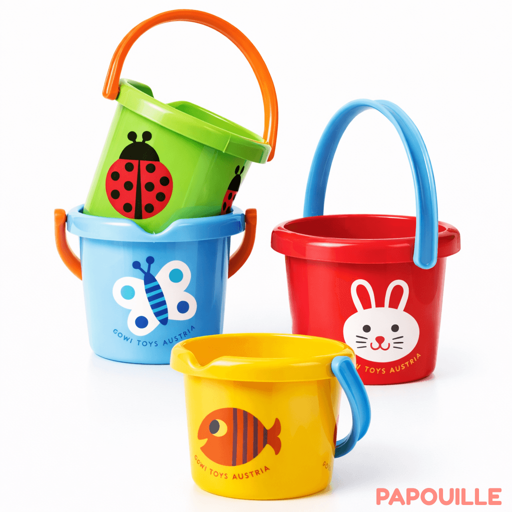 Un beau petit seau pour enfant à motif divers.
