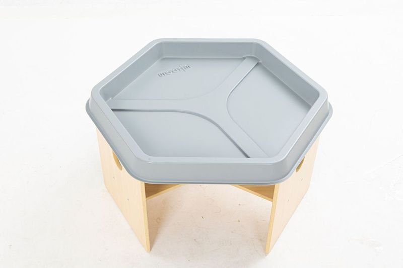 Sa surface spacieuse de 90 x 80 cm permet aux enfants de dessiner, construire ou participer à des jeux de groupe en toute liberté. Fabriquée en multiplex de peuplier avec un revêtement en mélamine finition érable, elle résiste aux chocs et aux rayures, offrant ainsi une durabilité optimale pour une utilisation intensive. Les bacs à matériaux intégrés, en polypropylène (PP), facilitent le rangement des jouets, crayons et fournitures diverses, tout en restant accessibles pour les petites mains curieuses.