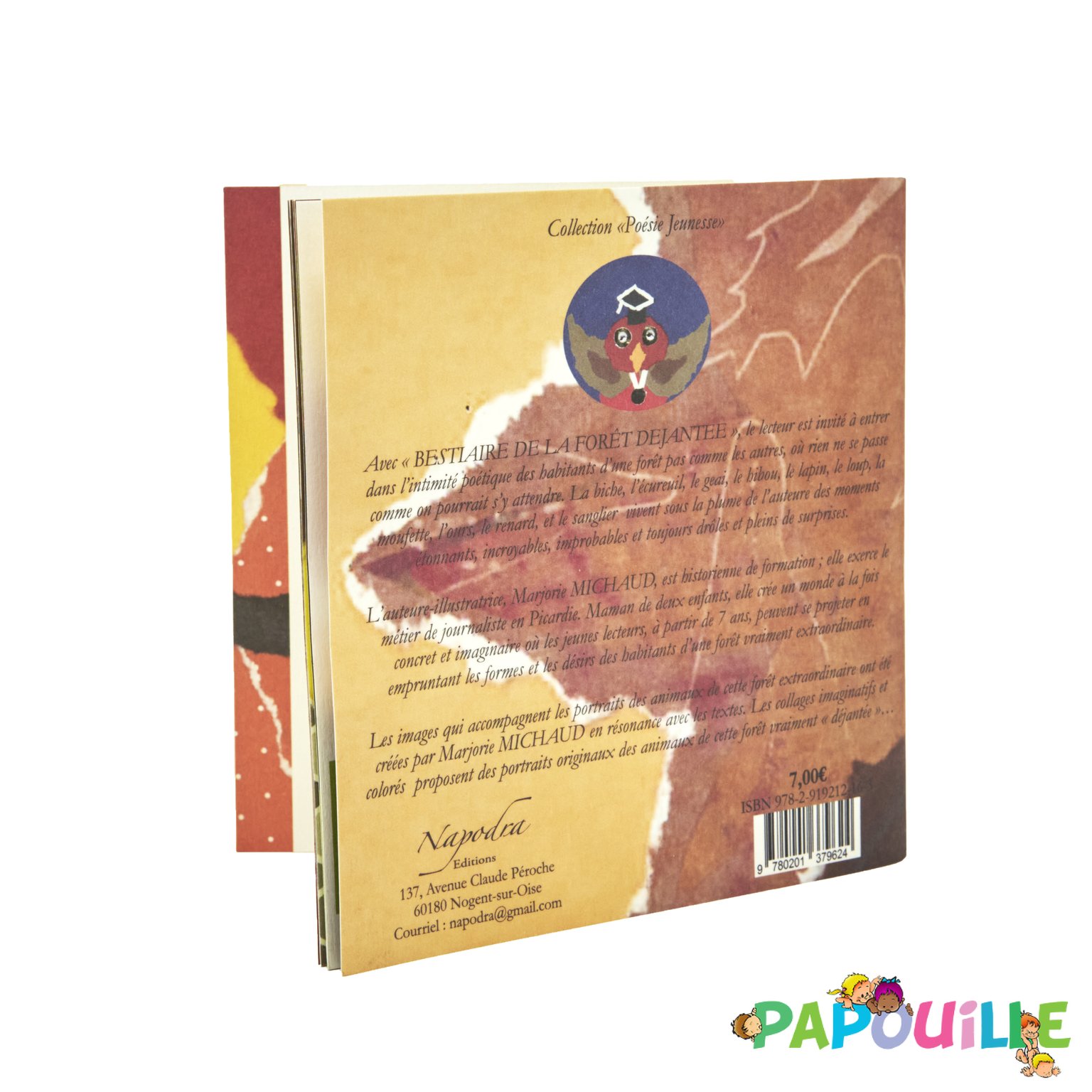 L'auteure, Marjorie Michaud, est historienne de formation. Elle exerce le métier de journaliste en Hauts de France. Maman de deux enfants, elle crée un monde à la fois concret et imaginaire où les jeunes lecteurs peuvent se projeter en empruntant les formes et les désirs des habitants de la nature... Après "Bestiaire du jardin enchanté" et "Pouxa et Pouxo préparent l'invasion", illustrés par Gauthier Pierard, elle se lance dans l'illustration avec "Bestiaire de la forêt déjantée" en donnant vie aux animaux grâce à des collages imaginatifs et colorés.