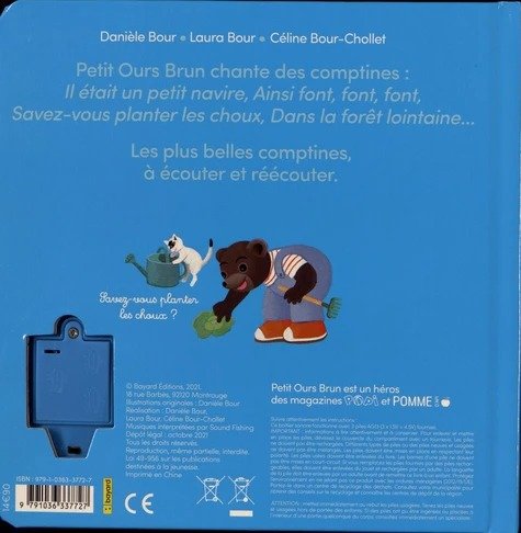 Les pages colorées de ce livre sont remplies d'illustrations charmantes mettant en scène Petit Ours Brun et ses amis dans des situations joyeuses et ludiques. À chaque page tournée, les enfants auront le plaisir d'écouter de tendres comptines. Les mélodies apaisantes et les paroles simples captiveront les jeunes lecteurs, stimulant leur sens de l'écoute et développant leur amour pour la musique.