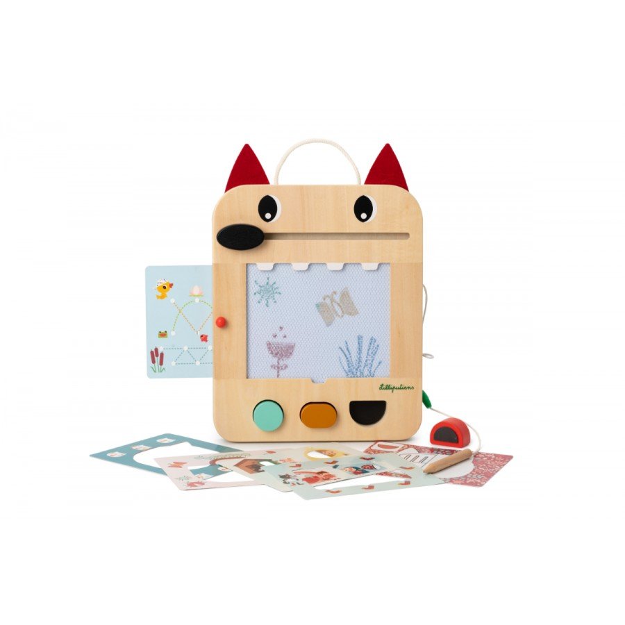 L’ardoise magique Louis le loup est bien plus qu’un simple jouet : c’est un outil d’éveil complet, pensé pour stimuler la créativité, la motricité fine et la concentration des tout-petits à partir de 18 mois. Son design chaleureux, incarné par la tête du célèbre loup de chez Lilliputiens, attire immédiatement l’œil des enfants et encourage leur curiosité naturelle.