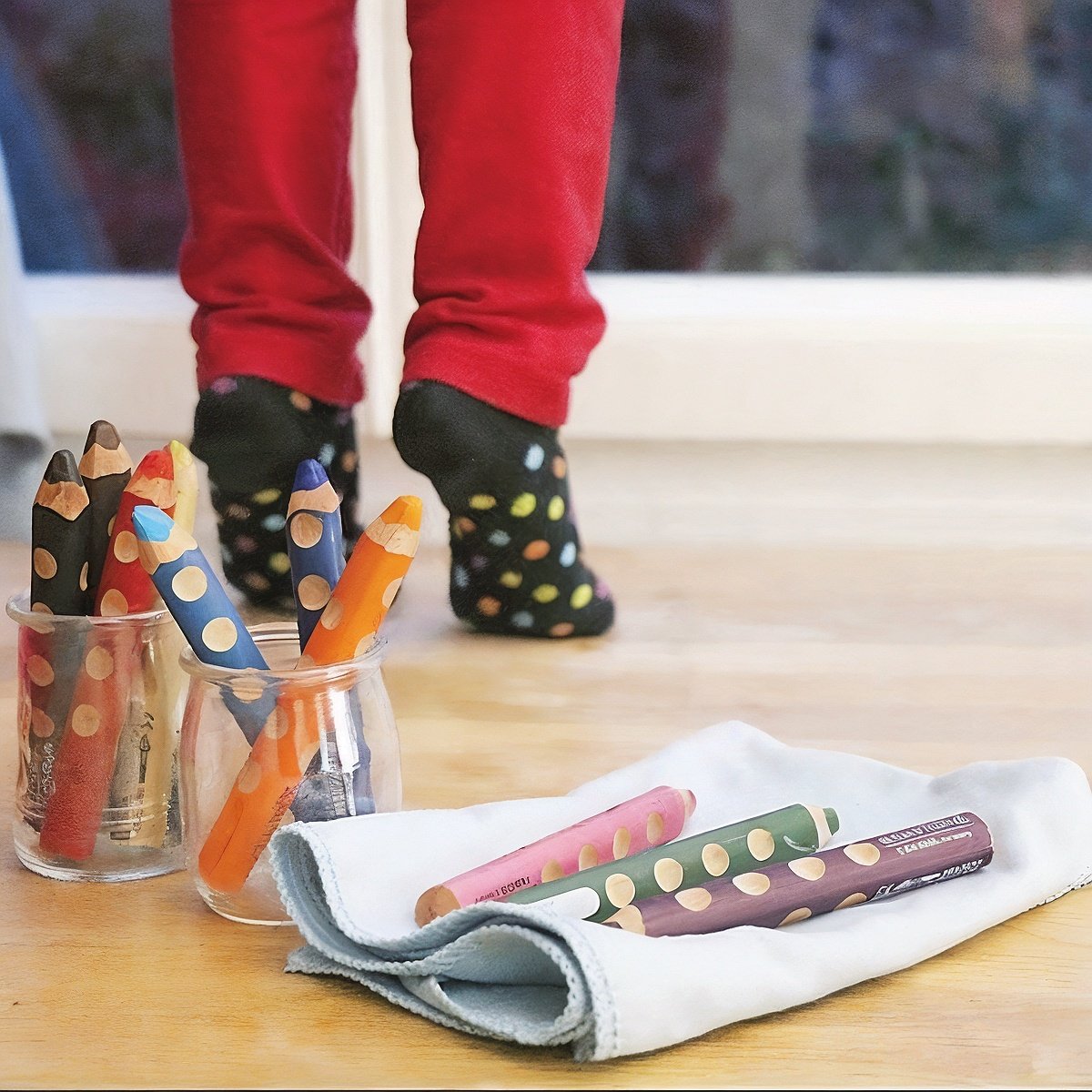 Le crayon est doté d’un corps ergonomique triangulaire, conçu pour garantir une prise en main optimale même pour les petites mains des enfants. Ses zones de préhension à facettes permettent une utilisation confortable et assurent un bon maintien, encourageant ainsi les enfants à développer leur motricité fine.