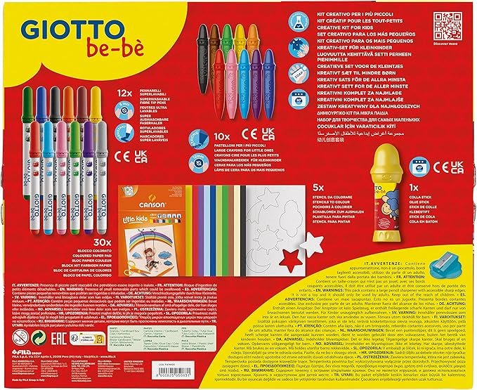 Stimulez l'imagination et la créativité des tout-petits avec le Kit créatif Giotto "Apprendre et Jouer", un set complet de 58 pièces spécialement conçu pour initier les enfants dès 3 ans aux joies du coloriage et du collage. Adapté aux petites mains, ce kit combine sécurité et plaisir, tout en encourageant le développement de la motricité fine et la créativité.
