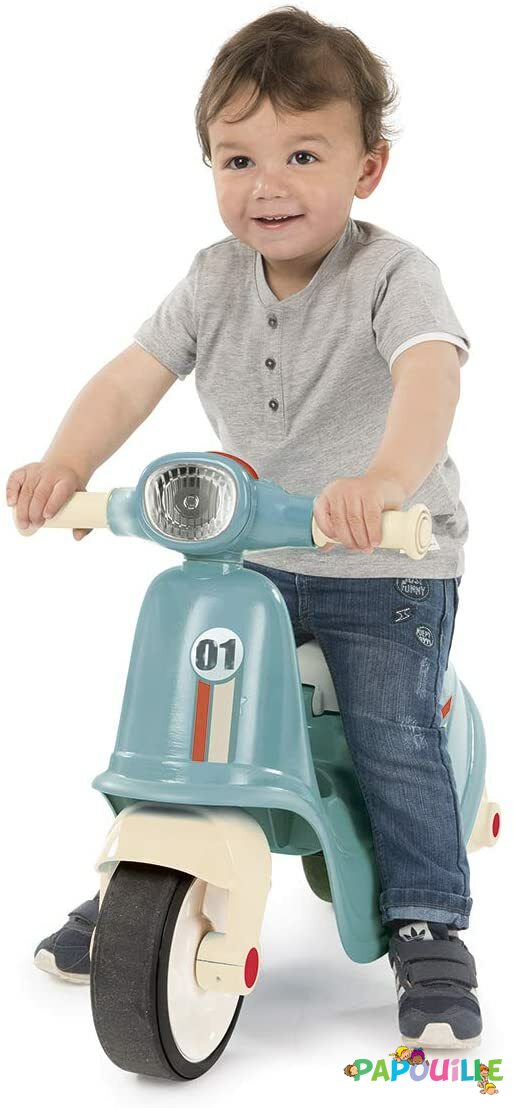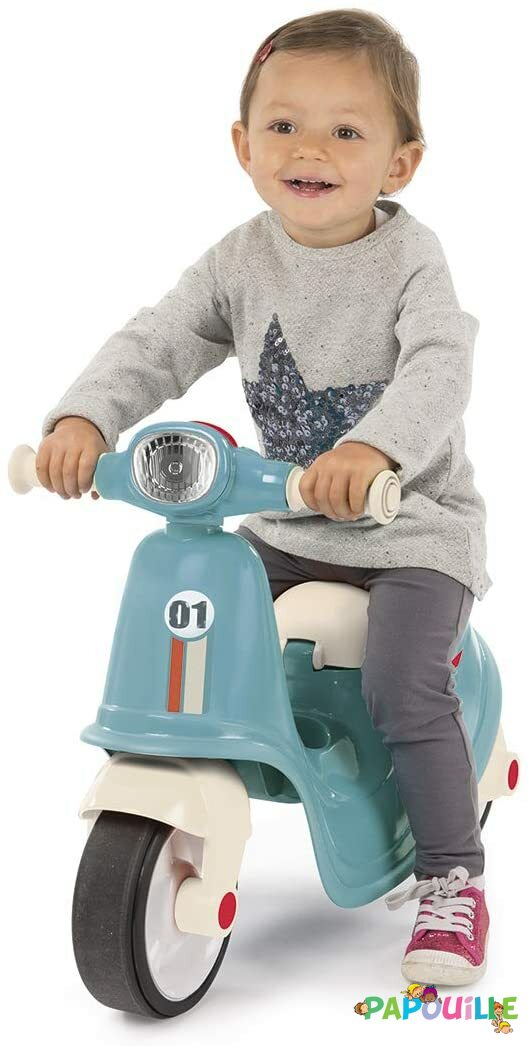 Grâce aux roues silencieuses, votre enfant pourra s’amuser et se balader tranquillement durant de longues heures ! Le porteur scooter deviendra vite son jouet préféré !