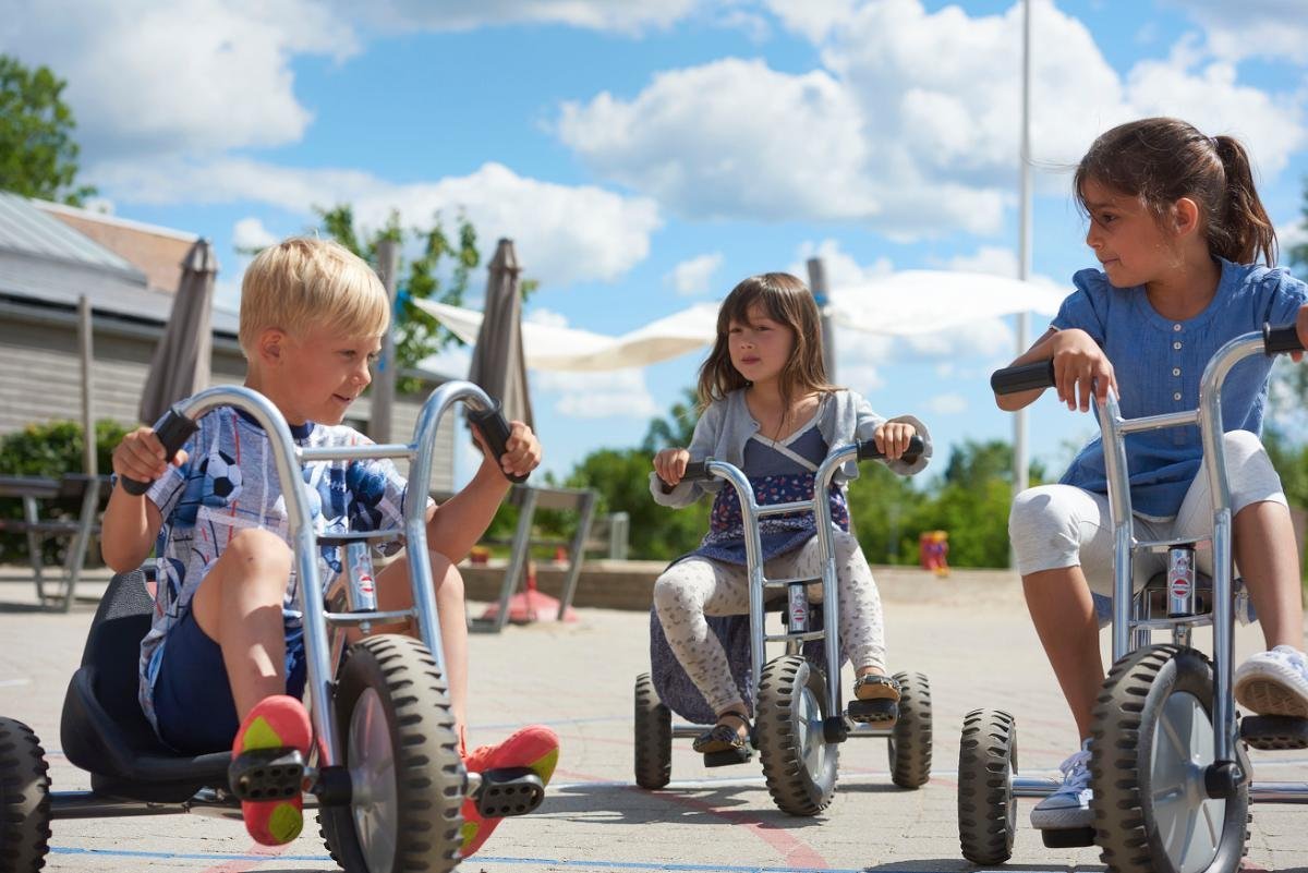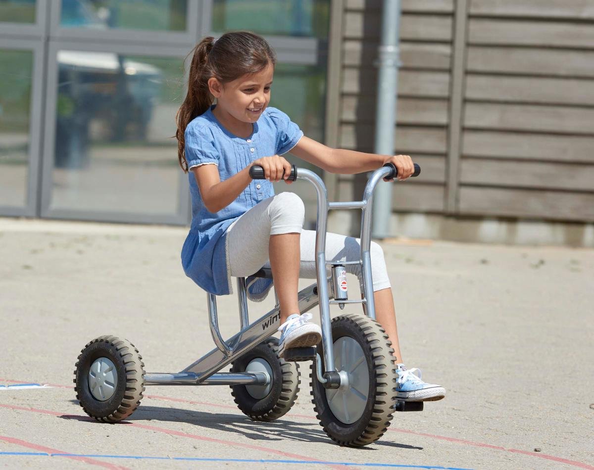 le Tricycle tout-terrain Viking Explorer, équipé de pneus larges et rugueux, parfaitement adaptés aux surfaces inégales. Conçu pour résister à l'épreuve du temps dans les environnements collectifs tels que les crèches, les écoles et les aires de jeux, ce tricycle se distingue par son look cool avec des cadres chromés au look tout-terrain.