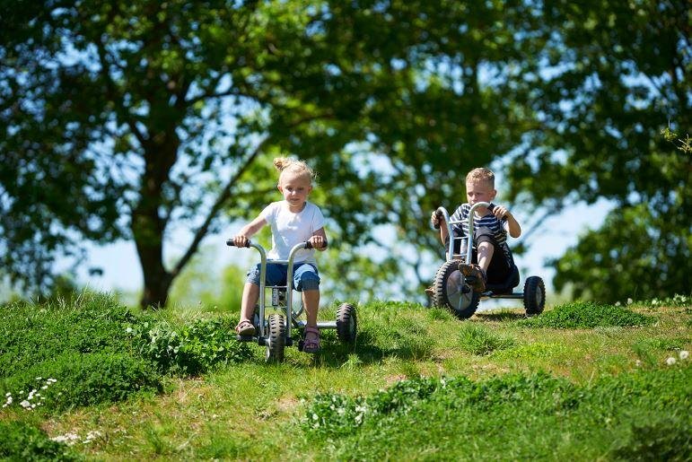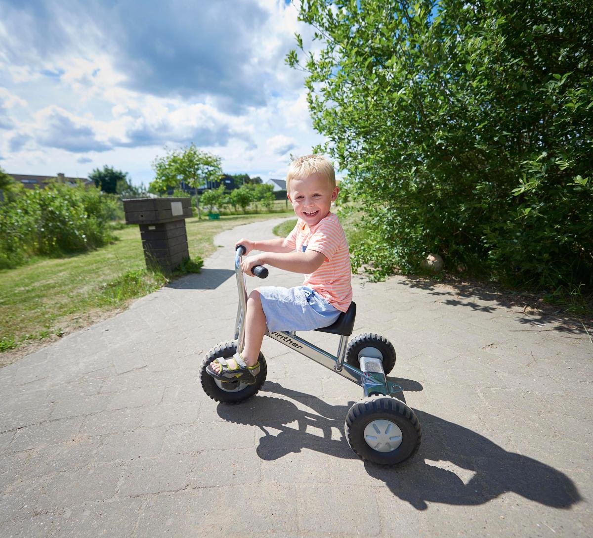 le Tricycle tout-terrain Viking Explorer, équipé de pneus larges et rugueux, parfaitement adaptés aux surfaces inégales. Conçu pour résister à l'épreuve du temps dans les environnements collectifs tels que les crèches, les écoles et les aires de jeux, ce tricycle se distingue par son look cool avec des cadres chromés au look tout-terrain.