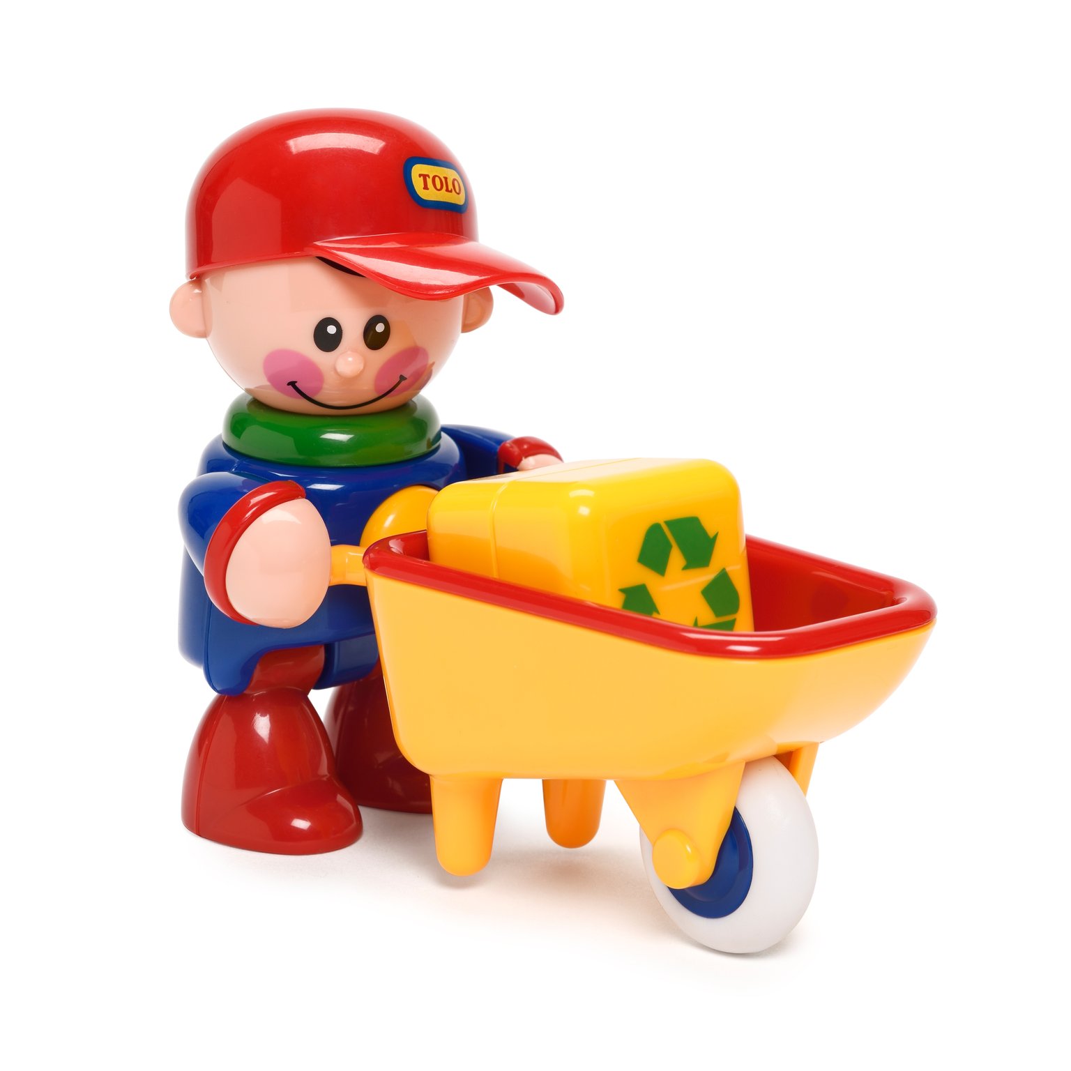 L'ensemble La maison tolo et figurines Tri comprend une maison qui s'ouvre sur un jardin gigogne, des meubles, une pompe à chaleur, une brouette, des bacs de recyclage, une famille First Friends, des animaux de compagnie et un arbre fruitier.