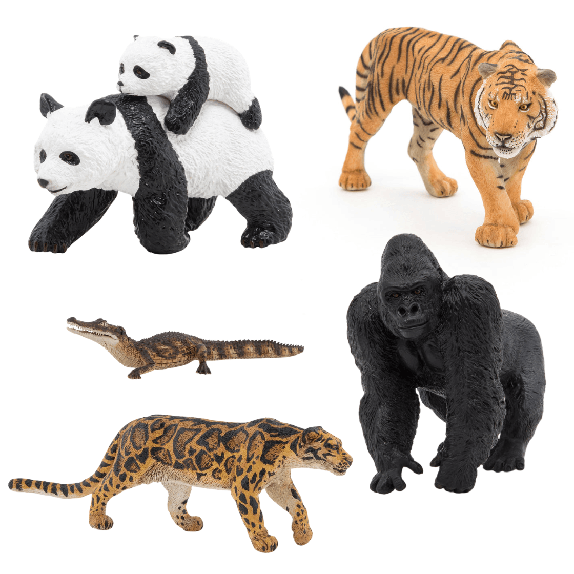 Ce lot de figurines Papo sur le thème de la forêt réunit 7 animaux emblématiques : Caïmen, Panthère Nébuleuse, Gorille, Panda et son bébé, Tigre. Conçues pour les tout-petits dès 10 mois, ces figurines réalistes invitent à la découverte du monde agricole et enrichissent les espaces de jeu des crèches, structures multi-accueil et écoles maternelles.