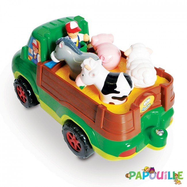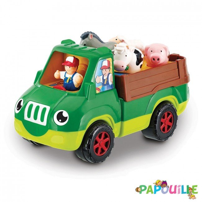Placez le paysan, dans son Pick up, pour aller chercher sa vache, son mouton, son cochon et son âne. L'agriculteur peut également être placé à l'arrière du camion pour nourrir et soigner ses amis de la ferme.