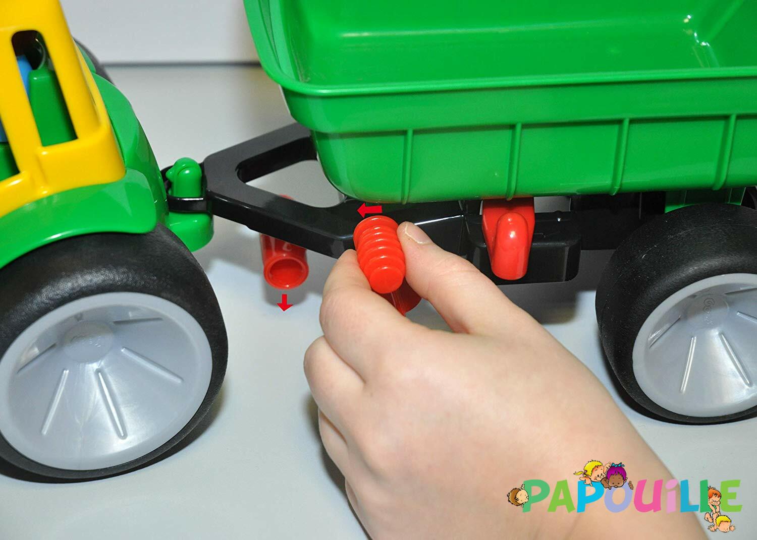 Ce tracteur avec remorque basculante est un jouet robuste et réaliste, spécialement conçu pour les petites mains des enfants dès 12 mois. Facile à manipuler, il séduit par son design soigné et ses fonctionnalités ludiques.