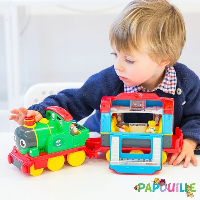 Tous à bord! Ouvrez la voiture intérieure entièrement meublée du train d'activités pour embarquer ses deux passagers dans leur siège confortable et le conducteur du train est prêt à emmener ses passagers dans une aventure passionnante ! Appuyez sur la cheminée du train d'activité pour entendre le sifflement de son train réaliste.