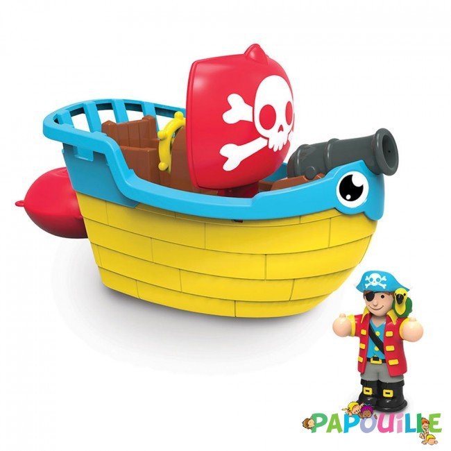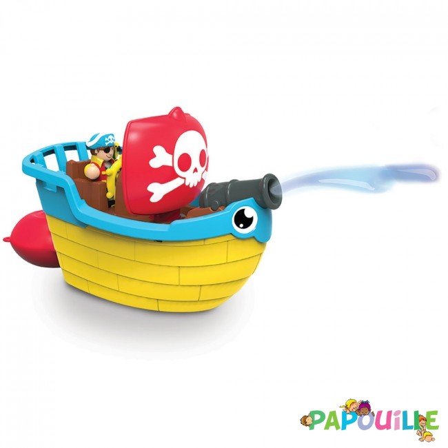 Comprend: 1 bateau pirate flottant avec canon à eau, 1 pelle et une aile amovibles, 1 pompe à eau et 1 figurine pirate Play Friend.