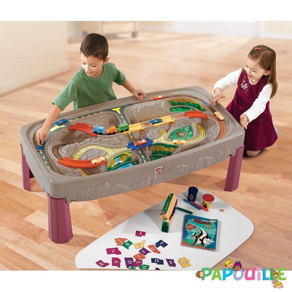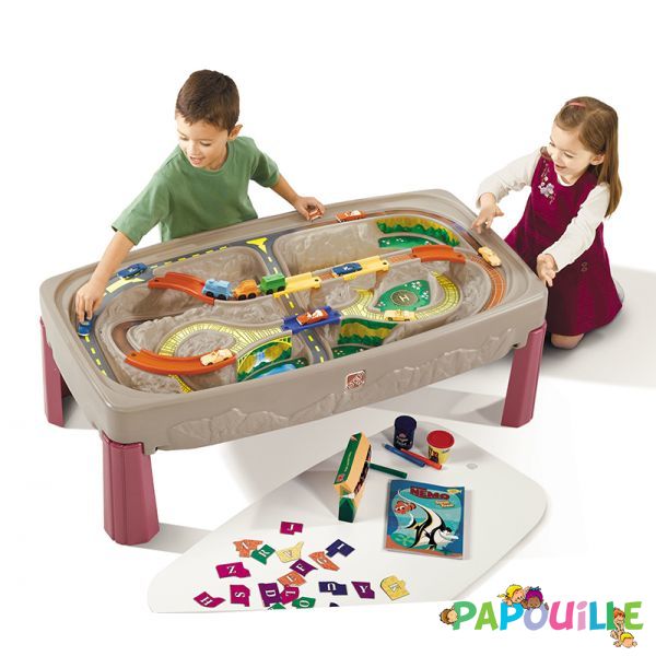 Table de jeu enfant Petit Train avec piste moulée à l’intérieur, à plusieurs niveaux et des ponts fixes (pour éviter de les perdre) !