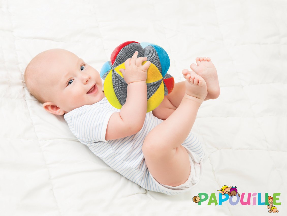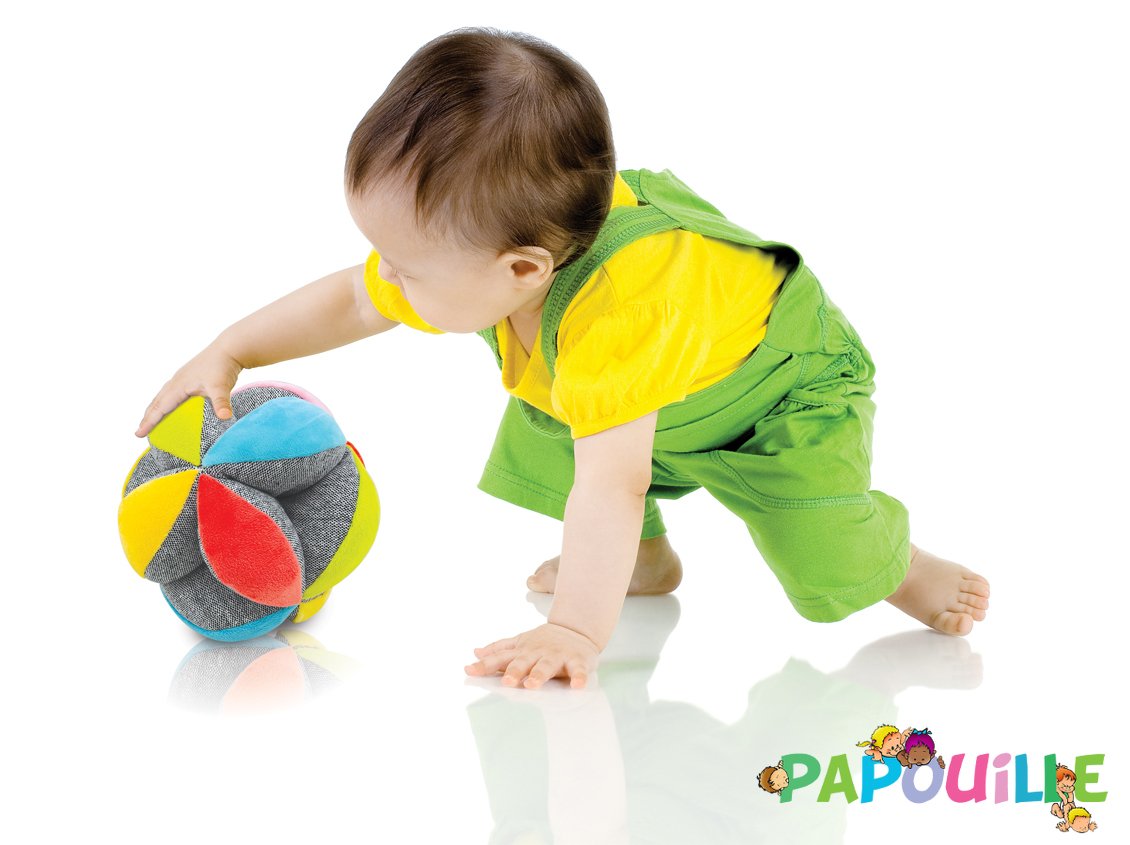 En grandissant, Bébé pourra la lancer et la rattraper facilement, donner des coups de pieds dedans, lui courir après, s’asseoir et se rouler dessus. Il explorera les nombreux creux et bosses, l'aidant ainsi à fortifier ses poignets et sa motricité fine.