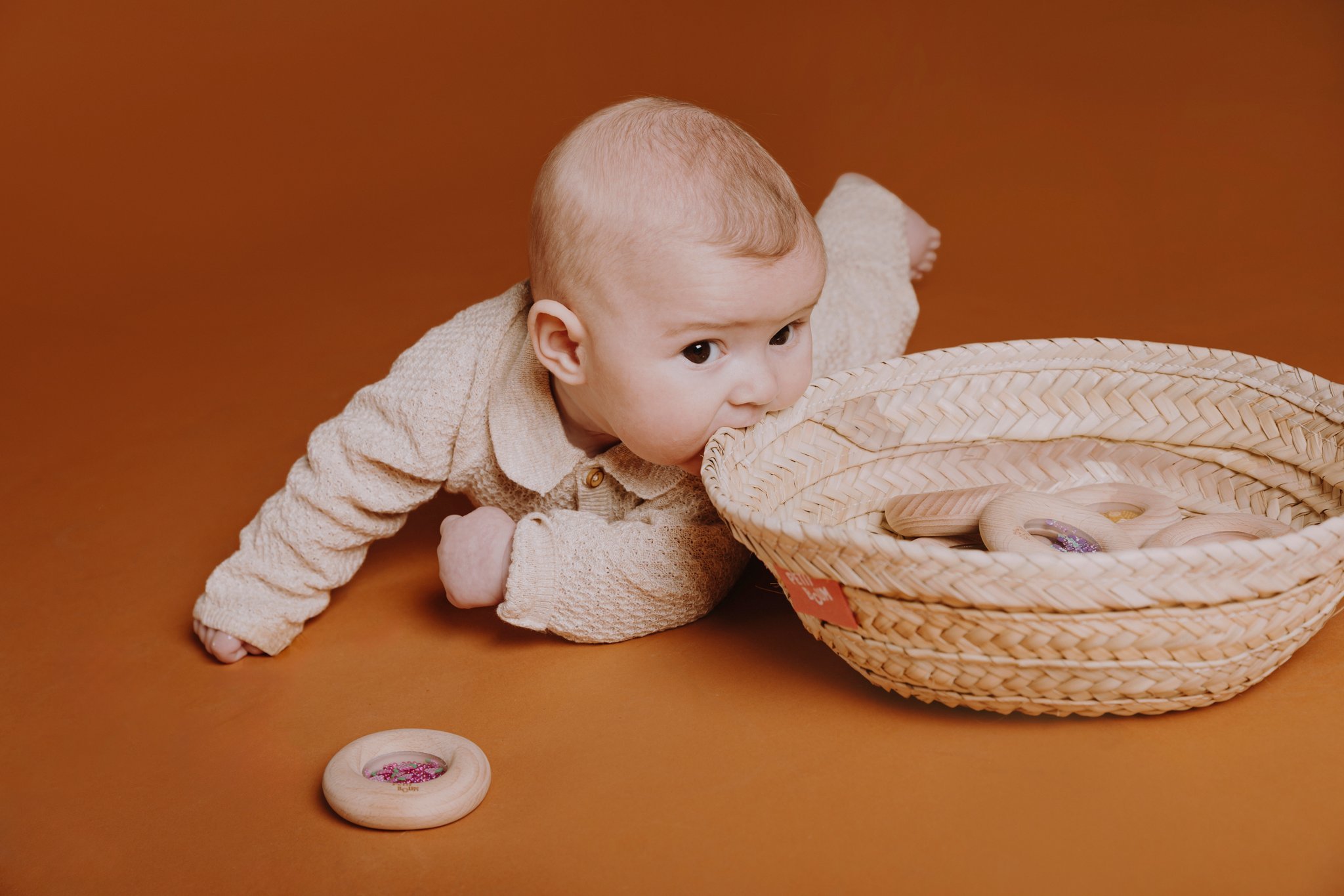 Fabriqué en bois de hêtre certifié FSC, ce hochet allie sécurité, durabilité et respect de l’environnement. Le plastique utilisé est garanti sans BPA, assurant une manipulation sans risque même lorsque bébé le porte à la bouche. Compact et léger, le donut sensoriel raisins s’emporte facilement dans un sac à langer ou un panier de jeux.
